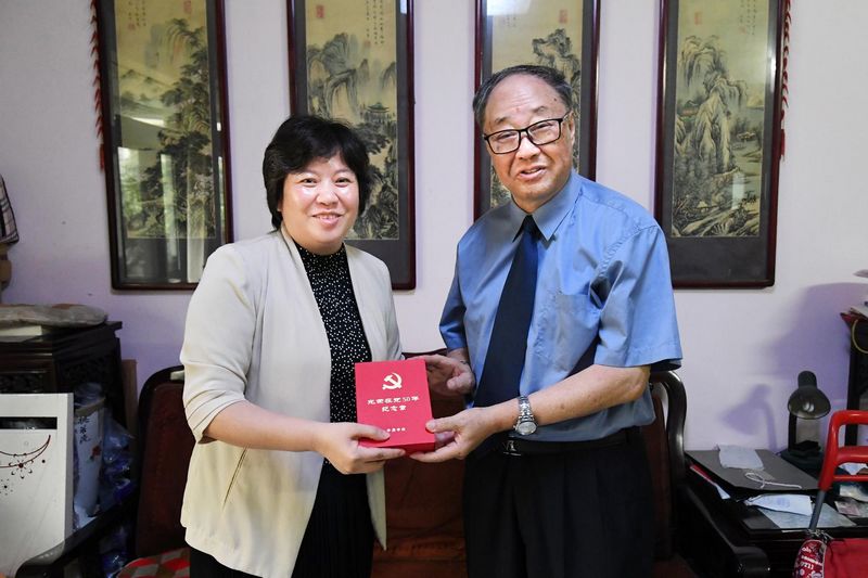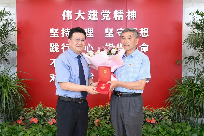 日前,我院通过举行颁发仪式和上门走访慰问相结合方式开展退休老党员“光荣在党50年”纪念章颁发工作。党组书记、检察长陶建平代表院党组向陈建中同志颁发“光荣在党50年”纪念章,并致以诚挚的问候。党组成员、政治部主任、机关党委书记顾莺上门为唐文朝同志颁发“光荣在党50年”纪念章。青年干警代表为老同志献花,听老同志讲传统、话传承。