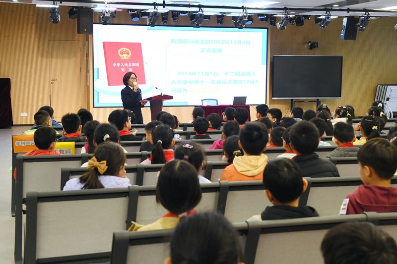 12月2日下午,我院党组成员、副检察长顾晓军赴上外黄浦外国语小学,以“成长必修课,争做宪法小卫士”为主题,为该校1600余名师生上法治教育课。