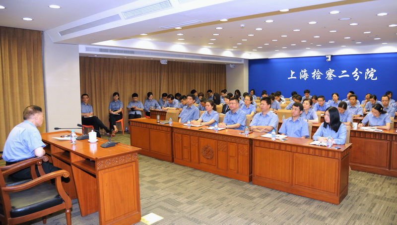 日前,党组成员、副检察长袁汉钧为分管部门干警上“两学一做”专题党课,公诉处、二审处、民行处、未检处等党支部50余名干警参加学习。