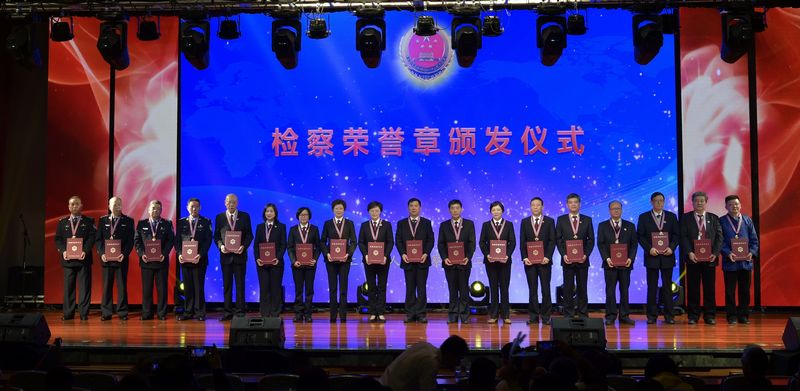 1月31日上午,我院举办“与祖国同庆,伴法治同行”2019年迎春联欢会,全院干警、文员和退休老同志200余人欢聚一堂,共迎新春佳节。党组书记、检察长陈思群同志致辞,向从事检察工作30年的17名干警代表颁发了“检察荣誉章”。