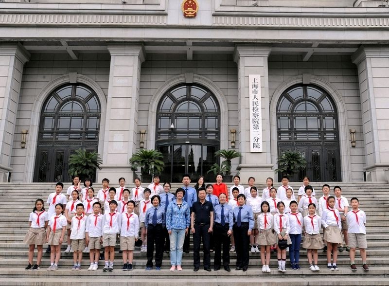 5月30日下午,我院举办以“携手关爱,共护明天”为主题的检察开放日活动。上海市和田路小学党支部书记王艳晖、教导主任朱晓菁以及该校五年级学生共近50名师生应邀参加活动。党组成员、副检察长顾晓敏、办公室负责人朱煜玮、检察六部副主任李红妹及相关部门检察官参加活动并与师生合影留念。第六检察部检察官曹小航向师生们讲授“与法同行,健康成长”法治课。