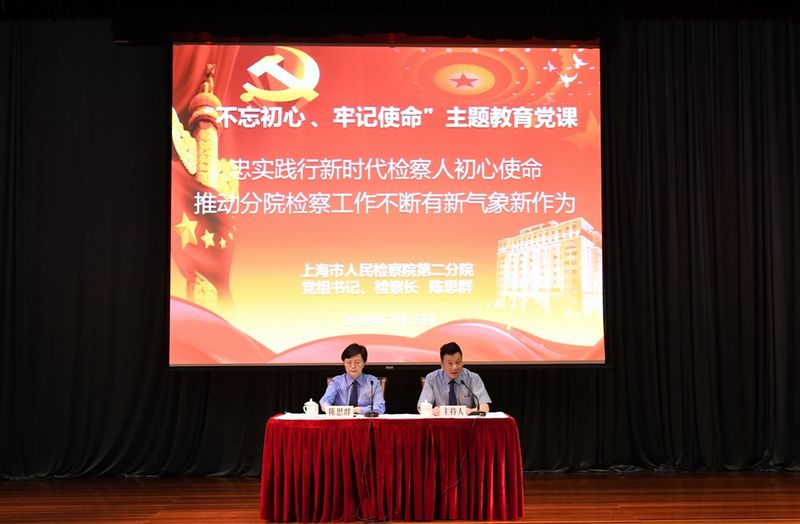 7月15日下午,为深入推进“不忘初心、牢记使命”主题教育,我院党组书记、检察长陈思群同志结合前期理论学习和开展调研情况,以“忠实践行新时代检察人初心使命推动分院检察工作不断有新气象新作为”为题为全院干警上党课。会议由党组成员、副检察长顾晓敏同志主持,市委第八巡回指导组潘勤副组长到会指导。