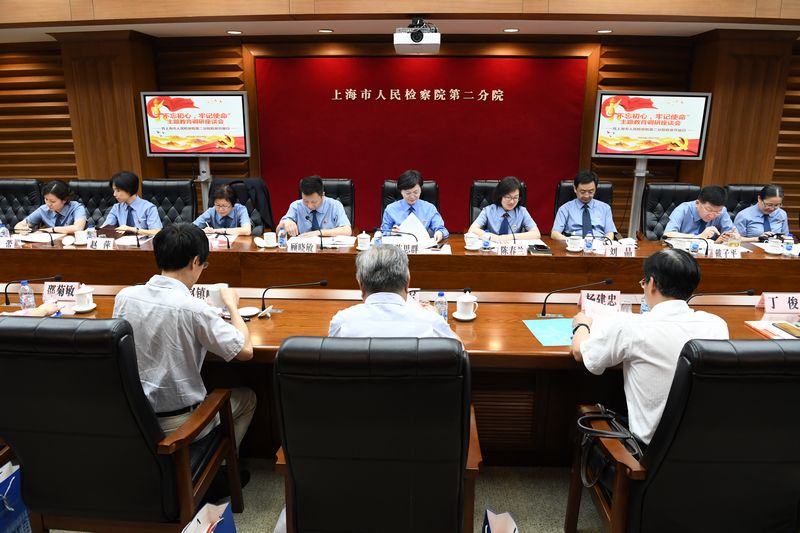 7月24日下午,我院举办“不忘初心、牢记使命”主题教育调研座谈会暨检察开放日活动,8名市、区人大代表和政协委员应邀参加。院党组书记、检察长陈思群,副检察长陈春兰、顾晓敏、刘晶,机关党委书记、检委会专职委员王琍出席。第一、第二、第四、第五检察部、办公室、机关党办负责同志和部分检察官参加了活动。