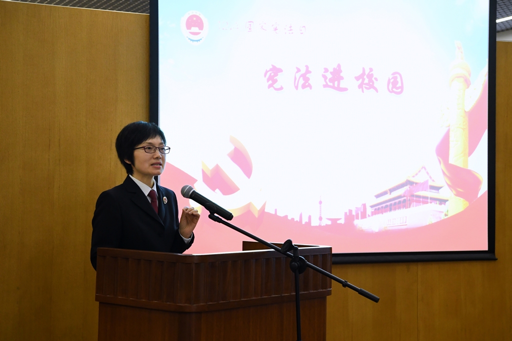 12月4日,在第六个国家宪法日来临之际,我院以“宪法,在我们心中”为主题,组织开展“宪法进校园”活动。宝山中学校长金旭峰、国家审计署特派办机关党委人事教育处处长周旋及相关人员和师生近50人参加。我院副检察长兼宝山中学法治副校长陈春兰出席活动,围绕宪法主要内容讲授法治课,并向学校赠送宪法书籍。第六检察部检察官曹小航和国家审计署特派办法规处杨建荣处长分别进行了法治宣讲。
