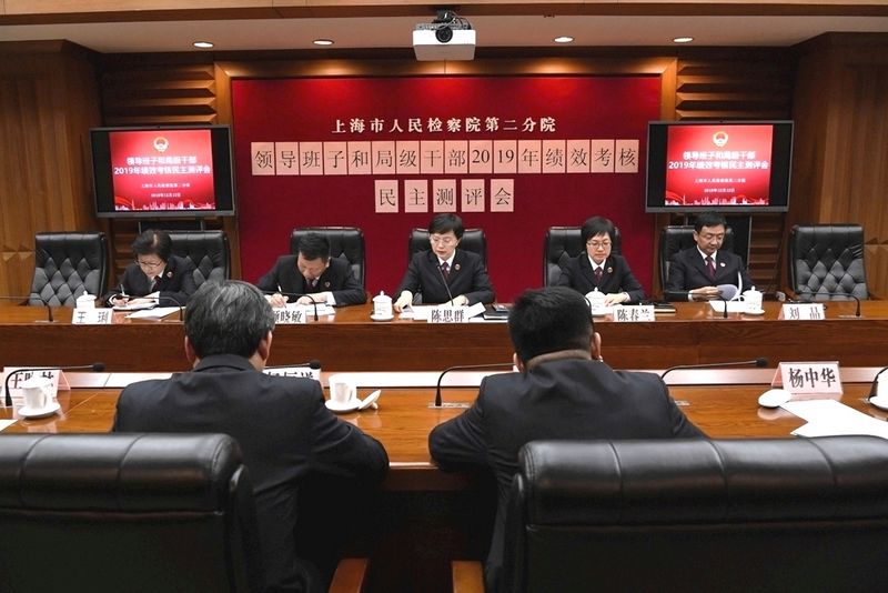 12月12日,我院召开领导班子和局级干部2019年度绩效考核民主测评会,院党组书记、检察长陈思群代表院领导班子述职,全院局级干部、各部门正副主任对院领导班子和局级干部进行了年度考核测评。