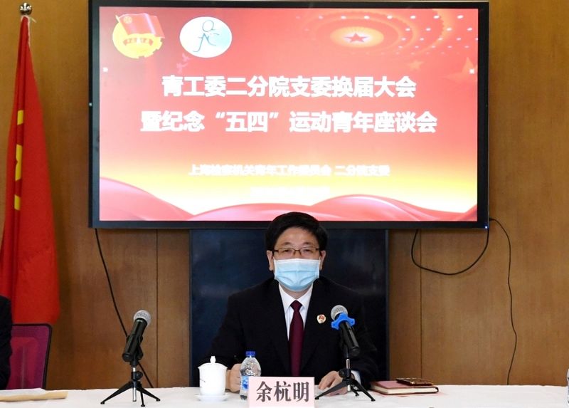 4月29日下午,我院召开上海检察机关青年工作委员会支委换届大会暨纪念“五四”运动青年座谈会。院党组成员、政治部主任余杭明出席,市检察院机关团委书记、青工委主任陈洁婷应邀到会指导,部分青年干警代表参加。会上,宣读了党组书记、检察长陈思群对全体青年同志的“五四”寄语。新老两届委员7名青年代表分别围绕开展青年工作,传承“五四”精神作了交流发言。余杭明主任代表党组对青工委支委换届表示祝贺,并对新一届青工委委员提出要求。