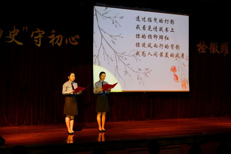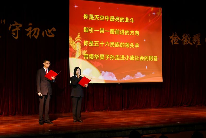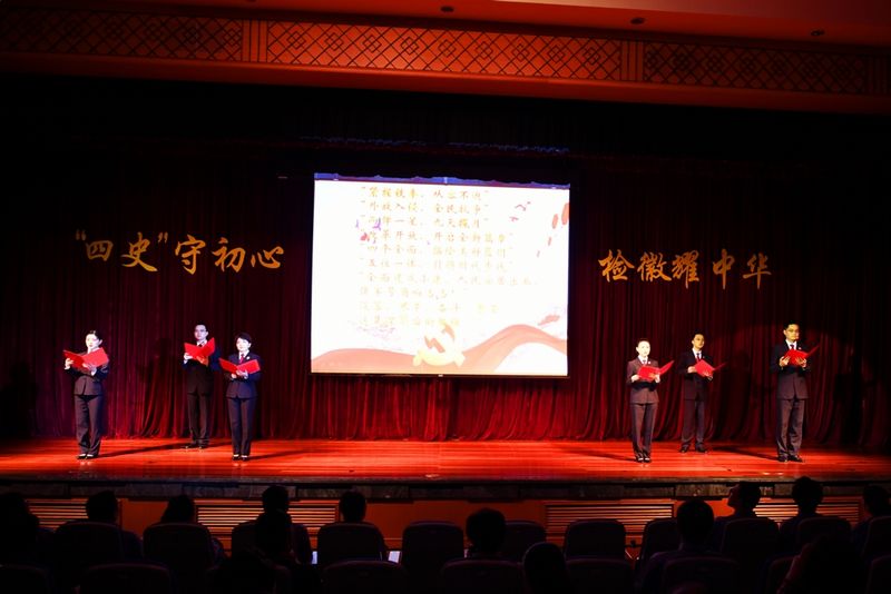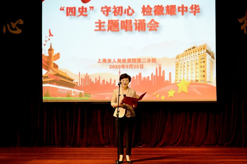9月25日,我院举办“四史守初心 检徽耀中华”主题唱诵会,来自全院12个部门的干警用诗与歌讴歌伟大祖国。党组书记、检察长陈思群同志出席并致辞,勉励全院干警以坚如磐石的信心、只争朝夕的干劲、坚韧不拔的毅力,一步一个脚印把“四大检察”发展推上新台阶,奋力创造新时代检察工作新篇章。