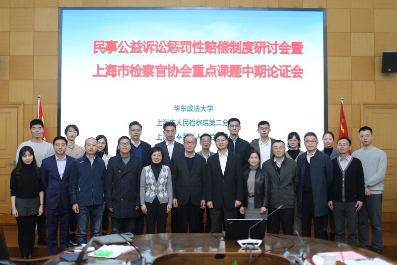 11月25日,由我院、奉贤区检察院与华东政法大学联合主办的民事公益诉讼惩罚性赔偿制度研讨会暨上海市检察官协会重点课题中期论证会在华东政法大学举行。华东政法大学校长叶青应邀致辞,我院副检察长陈春兰、奉贤区检察院检察长孙军出席,市检察院研究室副主任肖宁、市检察院第八检察部副主任林仪明、华东政法大学教授李翔、练育强、邓继好,复旦大学教授段厚省参加。与会人员围绕消费民事公益诉讼中检察机关适用惩罚性赔偿的必要性及路径选择等问题进行了座谈交流。