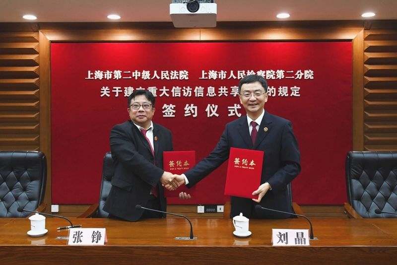 日前,为进一步发挥检法信访工作协同机制作用,及时排查化解信访矛盾纠纷,我院与二中院举行《关于建立重大信访信息共享机制的规定》签约仪式,党组成员、副检察长刘晶与二中院党组成员、副院长张铮出席,相关人员参加。