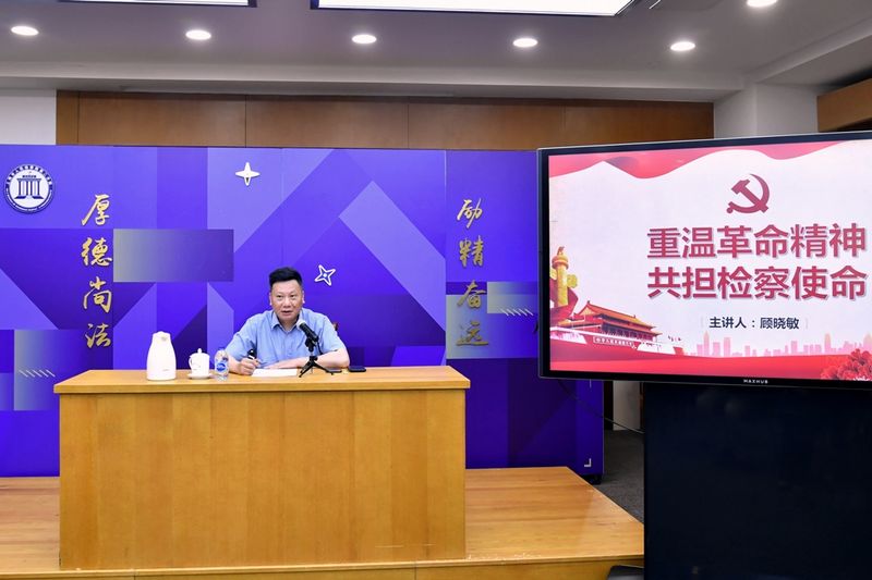 6月29日,我院党组成员、副检察长顾晓敏以“重温革命精神 共担检察使命”为主题,为第一、第二、第三、第四检察部干警上党课。