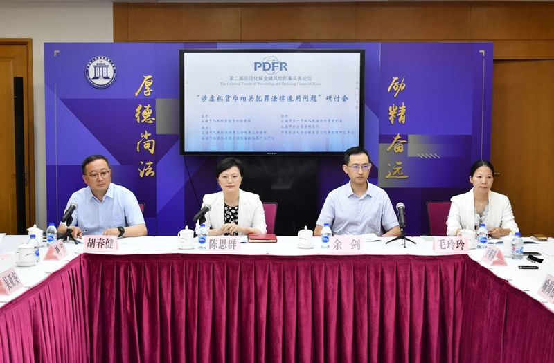 7月9日,由市检察院第四检察部、一中院刑事审判庭、市公安局法制总队、华东政法大学金融监管与刑事治理研究中心联合举办,我院第三检察部和上海市银行保险金融犯罪研究中心承办的“第二届防范化解金融风险刑事实务论坛”在我院举行。本届论坛以“涉虚拟货币相关犯罪法律适用问题”为主题,党组书记、检察长陈思群,市检察院第四检察部主任胡春健,一中院刑事审判庭庭长余剑,市公安局经侦总队法制支队副队长汤海挺,华东政法大学金融监管与刑事理论研究中心主任毛玲玲教授出席论坛。最高法研究室刑事处处长喻海松应邀出席,来自本市公检法机关、学术界的50余位专家、学者参加论坛。