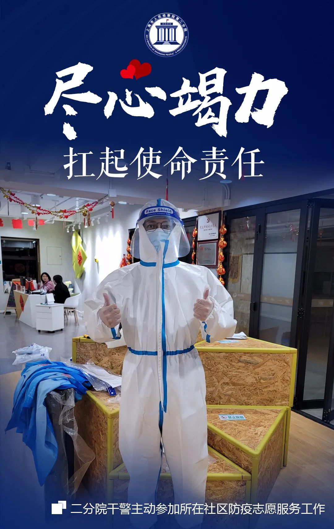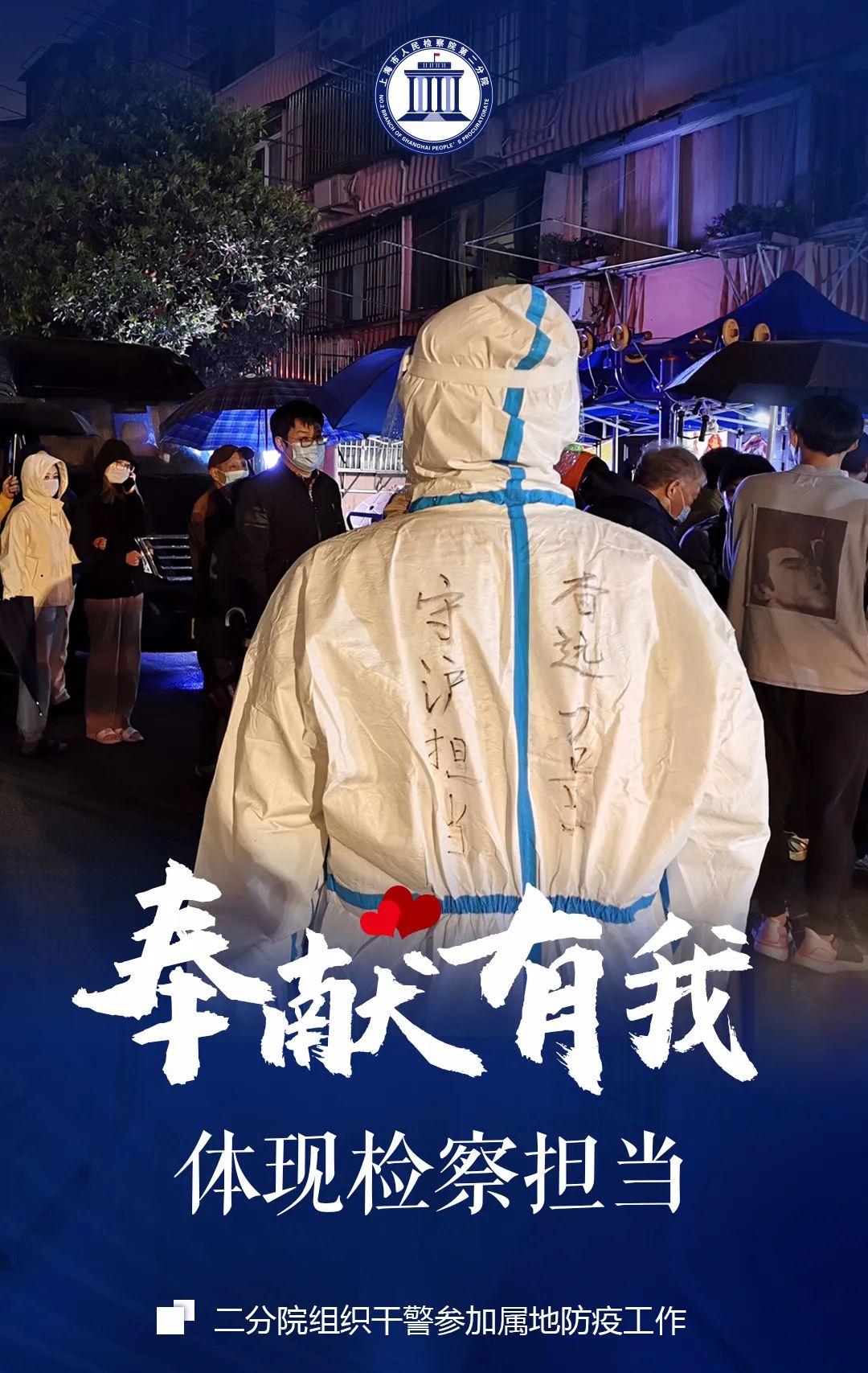 此轮本土疫情防控阻击战已到了关键时刻疫情就是命令防控就是责任检察尽显担当二分院全体干警响应号召 精诚团结 履职尽责聚是奋进之火散如灼灼繁星入社区志愿者身先士卒“蓝精灵”检察为民居家中运筹“寒舍”之内襄助“千里”之外守岗位须臾不歇 片刻不怠恪尽职守 不负检辉履行检察职能 服务人民群众处处是他们的身影……