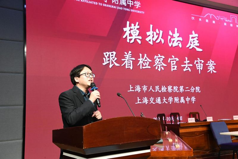 10月14日下午,我院与上海交通大学附属中学联合开展“模拟法庭”活动,党组书记、检察长、上海交通大学附属中学兼职法治副校长陈思群,上海交通大学附属中学校长王健出席观摩活动,第一检察部、办公室相关负责同志参加。