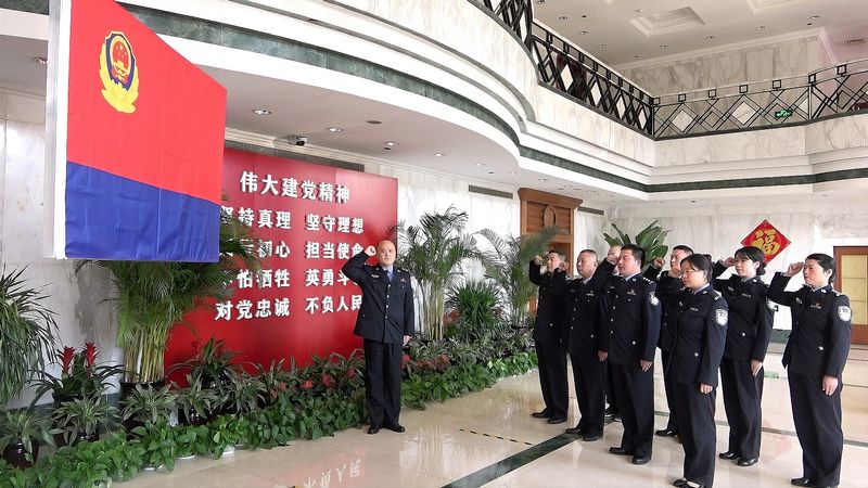 1月10日中国人民警察节当天,我院司法警察开展向警旗致敬宣誓活动。