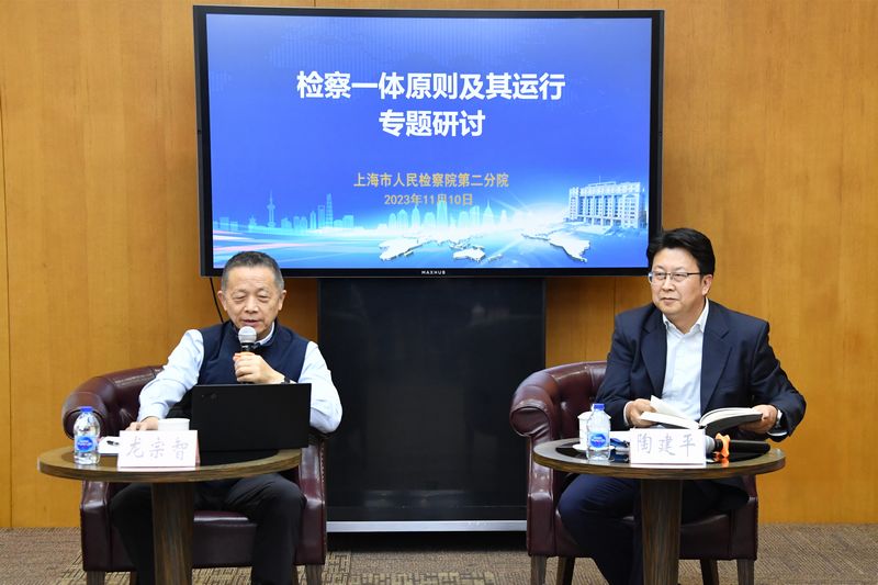 11月10日,我院邀请四川大学985工程法学创新平台首席科学家、教授、博士生导师龙宗智作客北片辖区,开展“证据审查若干问题”专题讲座和“检察一体原则及其运行”专题研讨。党组书记、检察长陶建平主持讲座和研讨。