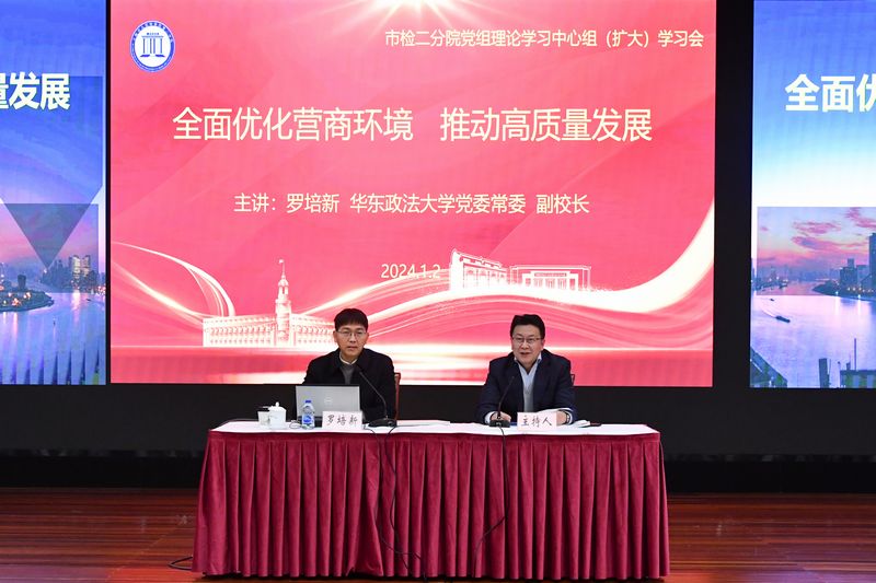 1月2日上午,我院召开党组理论学习中心组(扩大)学习会,邀请华东政法大学党委常委、副校长罗培新教授,以“全面优化营商环境,推动高质量发展”为主题作辅导报告。党组书记、检察长陶建平出席并主持,全体干警参加,辖区基层院以视频连线形式同步参会。