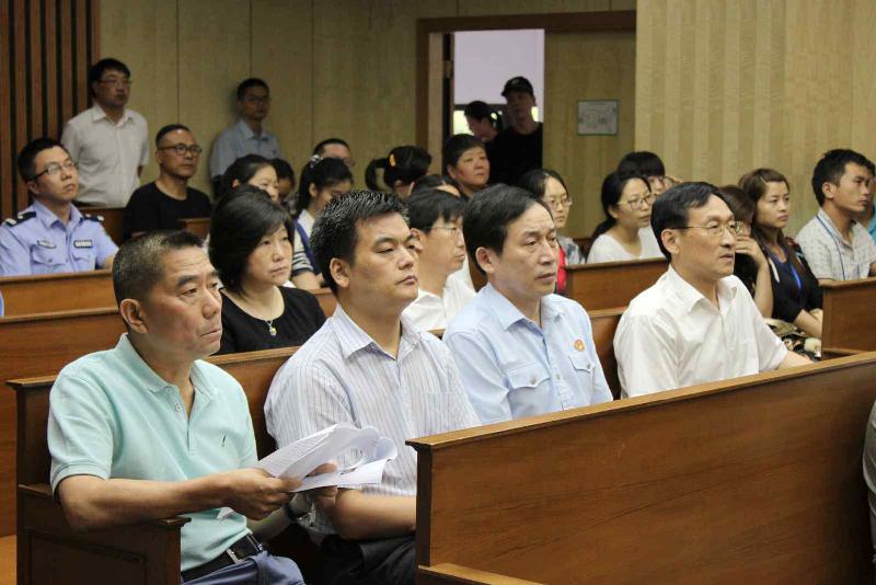 在院党组的高度重视、分管检察长的亲自指导下,该案于2015年8月11日下午在虹口区人民法院公开开庭,由科长柳文彬、助理检察员李丹出庭支持公诉。庭前,按照分管检察长的指示,除了做好充分的庭前预案之外,还对社会舆情予以风险评估,做好应对之策。开庭当天,法治天地栏目对庭审进行了电视直播,上海电视台案件聚焦以及上海日报的媒体记者、多名被害人及其家属、侦查机关人员均纷纷到场。我院副检察长田欢忠、分管检察长潘建安、检委会专职委员余耀年、张建及两名外聘评委也参与庭审旁听。