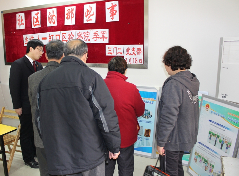近日,我院社区检察科、侦监科至江湾镇“三门二”居委进行法制宣传活动。社区检察科副检察官针对近期高发的P2P领域集资诈骗、电信诈骗、房产诈骗和保健品、保险诈骗等问题向居民作法制专题讲座。此次讲座目的在于提高居民P2P金融投资风险防范意识及其他电信类诈骗防范意识,同时增进居民对社区检察工作的了解。讲座结束后,侦监科检察官为居民们提供法律咨询。