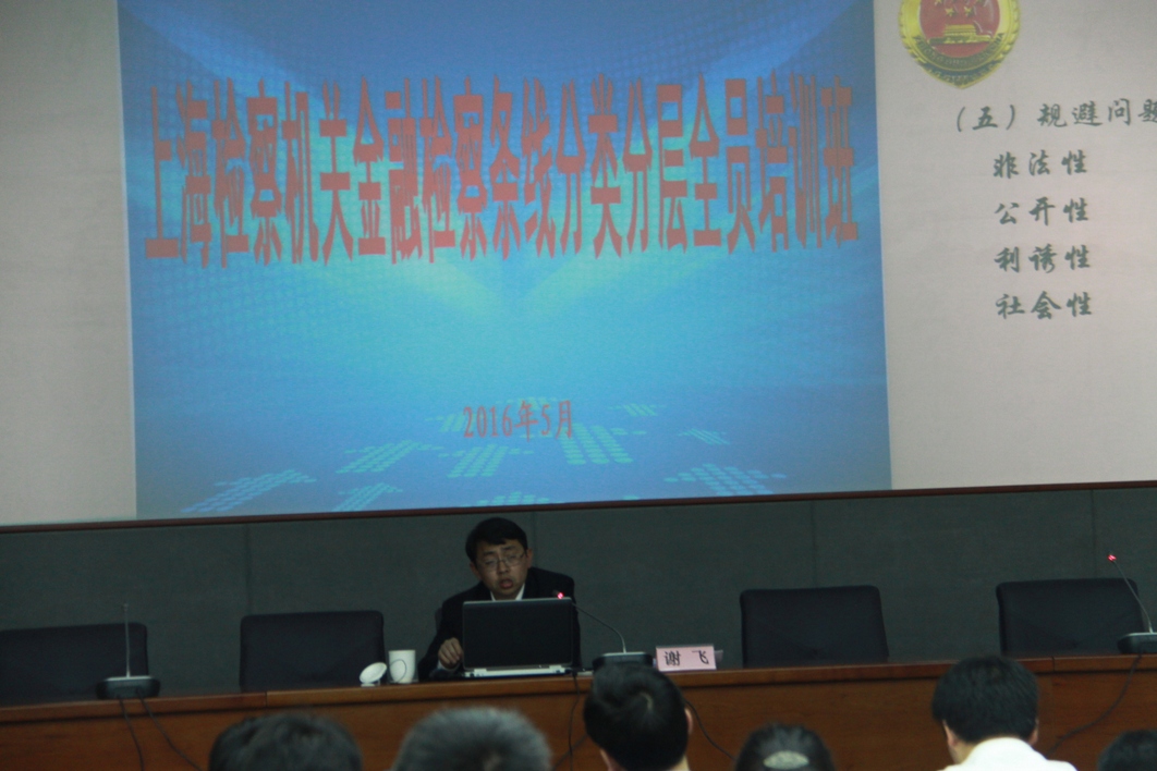 2016年5月4日下午,航运(金融)检察科副科长谢飞在上海市检察官培训中心为全市金融条线培训班授课,来自全市金融部门的全体学员参加了此次听课。此次授课主题是“非法集资类案件办理难点及应对”。谢飞同志围绕“对于打击互联网金融平台犯罪的认识”、“定性及证据认定中的难点”及“证据标准和办理中应注意的问题”三方面展开授课,从专业化角度讲解理论的同时,结合办理过的经典案例,将经验做法予以交流,深入浅出地就虹口区院在办理非法集资类案件中遇到的难点以及相应的经验做法进行交流,授课效果良好。