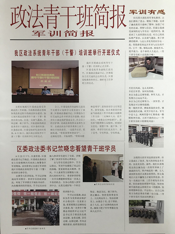 为全面推进政法领域各项改革过程中的政法队伍建设,加大政法系统青年干警的教育培训力度,打造一支朝气蓬勃、作风过硬、敢于担当、开拓进取的政法优秀青年干部队伍,6月20日,虹口区政法系统青年干部(干警)培训班第一期隆重开班。