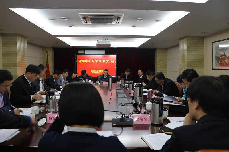 近日,我院举行党组中心组学习(扩大)会,传达贯彻党的十九大精神。会议传达了党的十九大、十九届一中全会、全市党员负责干部会议、全市检察机关学习党的十九大精神报告会、区委中心组学习(扩大)会和十届区委五次全会精神,会议研究讨论了我院《学习宣传贯彻党的十九大精神方案》。院党组书记、检察长金建庆出席会议并提出要求,院党组成员出席会议,各科室负责人参加学习并作交流发言。