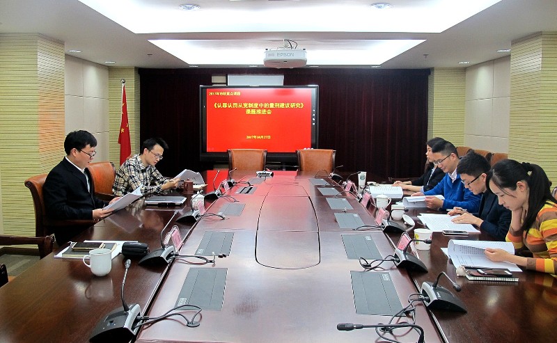 近日,皇甫长城副检察长主持召开了由市院公诉一处顾晓敏处长领衔,我院与嘉定区院共同承担的市院2017年重点课题《认罪认罚从宽制度中的量刑建议研究》的课题推进会,课题组成员顾静薇、陈荔、刘强、周健、解璇、任轶琴以及嘉定区院研究室梁春程参加会议。