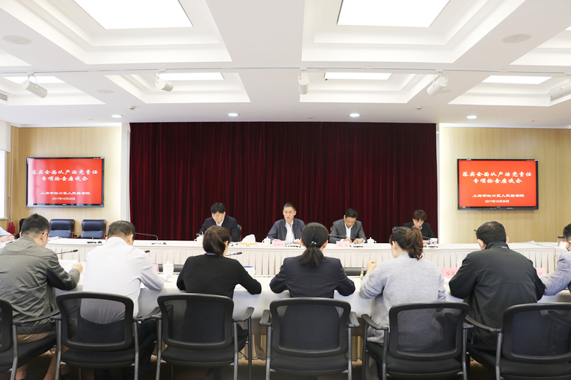 根据《中共虹口区委办公室关于开展落实全面从严治党责任专项检查的通知》要求,以及我院《关于开展落实全面从严治党责任专项检查的工作方案》部署,近日,我院召开落实全面从严治党责任专项检查座谈会。院党组书记、检察长金建庆主持会议并讲话,院党组成员、副检察长陈振,院党组成员、副检察长皇甫长城,院党组成员、政治部主任肖蓉晖及各职能部门、机关党委主要负责人出席会议。