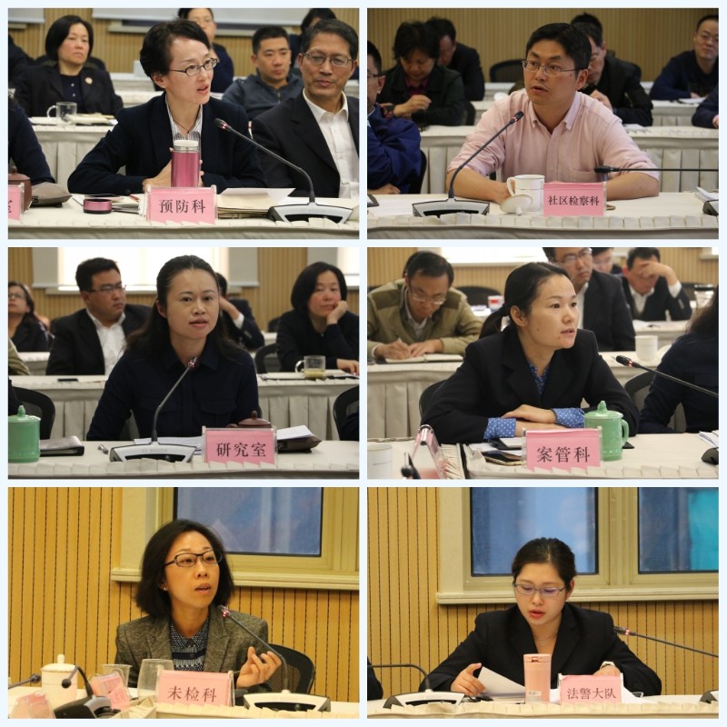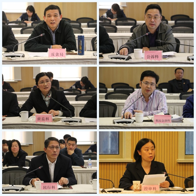金建庆检察长在听取了各业务部门的汇报后,对今年业务部门在履行监督职责、打造亮点工作、落实司法责任制等方面的成效给予肯定,并指出:一是继续聚焦监督主责主业,提升监督质效。刑检部门对内要做到分工协作,树立全院一盘棋思想,对外要进一步加强和公安、法院的协作配合,依托兄弟部门做好各项工作,完善公检法联席会议等工作机制。公诉部门要进一步完善同公安机关的季度性通报机制,进一步提升检察建议、一类问题通报等法律文书的监督效果;航运(金融)部门要总结好今年金融检察工作成果,打造航运(金融)品牌,延伸办案效果,对标区域中心建设制定下阶段工作计划,挖掘出新的工作亮点;未检部门要继续深化未成年人司法救助、未成年人特殊权益保障等方面的工作,继续开展好“法治进校园”等法律宣讲活动;侦监部门要探索建立更加有效的监督信息来源平台,实现工作精准化、精细化、规范化;监所部门要继续做好监所内违法犯罪活动的检察工作,发挥好监所部门的职责职能,进一步完善针对律师、家属的服务保障等各项便民利民工作,做到信息通畅,沟通及时。二是深入推进检察业务改革,积极配合监察体制改革。要深入推进公益诉讼工作,公益诉讼是下阶段民行部门和全院的重点工作,要加强与法院等单位的沟通协调,建立和完善相关工作机制。综合部门要配合做好公益诉讼人才培养和对外宣传工作。要深入贯彻中央《关于在全国各地推开国家监察体制改革试点方案》的要求,按计划做好自侦部门转隶工作,重点关注转隶过程中干警的思想动态,做到队伍不乱、思想不散、节奏不慢。三是围绕司法责任制落实,继续做好人才队伍建设。要继续加强核心能力建设,做好人才培养的统筹规划,结合业务条线“三优一能”评比活动,通过实战演练、理论调研,提升将理论转化为实践的能力,提高综合素能和检察官职业道德,培养检察专家人才。