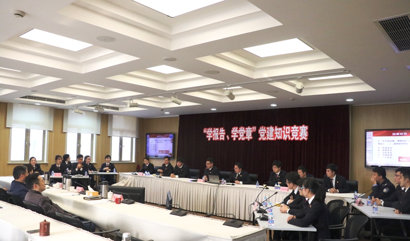 竞赛内容包括十九大报告、新修订的党章等党建相关知识。竞赛中,共6支队伍18名选手聚精会神、反应敏捷,你追我赶、精彩迭出。经过激烈的角逐,最终由控申科、航运(金融)科和公诉科组成的代表队获得第一名。