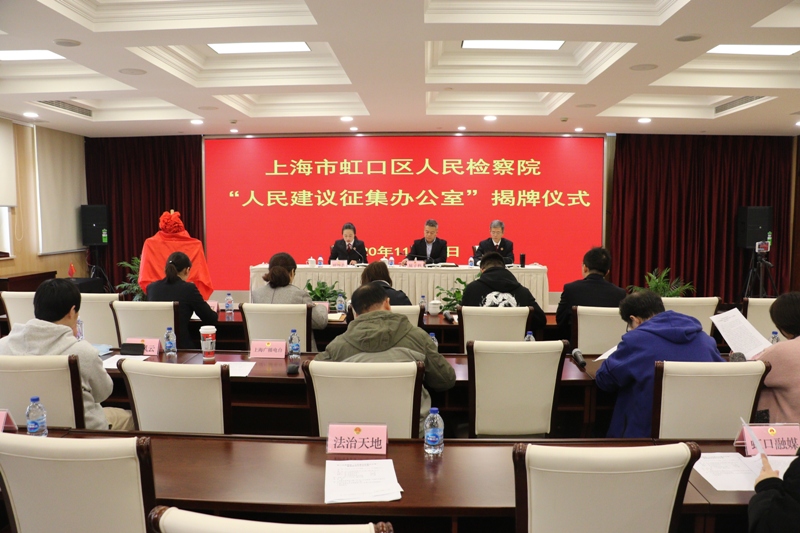 近日,我院举行“上海市虹口区人民检察院人民建议征集办公室揭牌仪式”,区联席办、区信访办、区人民建议征集办公室主任展子栋,我院党组成员、副检察长陈卫民出席揭牌仪式并为我院人民建议征集办公室揭牌。区人大代表雷国兴、部分媒体记者以及全院各部门干警代表参加。 会议由第六检察部主任顾静薇主持,并解读《上海市虹口区人民检察院关于开展人民建议征集工作的若干规定》。随后,我院举行“上海市虹口区人民检察院人民建议征集办公室揭牌仪式”新闻发布会,发布会由第六检察部主任顾静薇、检察官助理张艺馨共同发布,由第六检察部检察官刘谊主持。检察日报、上海电视台、检察风云、文汇报等十余家新闻媒体和部分区人大代表应邀参加发布会。新闻发布会上,检察官助理张艺馨首先介绍了“上海市虹口区人民检察院人民建议征集办公室”成立的目的、意义及工作打算,并由第六检察部主任顾静薇介绍了人民建议相关典型案例。在记者提问环节,第六检察部主任顾静薇就“上海市虹口区人民检察院人民建议征集办公室”成立后的运行模式、与检察信访工作的区别等问题答记者问。