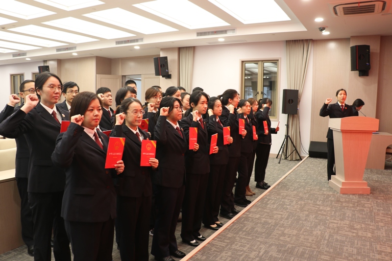 近日,我院举行宪法宣誓仪式暨集体政治、廉政谈话会议.院党组成员、副检察长孔雁,派驻纪检监察组组长张捷出席了宪法宣誓仪式。我院干警代表在孔雁副检察长、张捷组长的带领下齐唱国歌,并面对国旗,手持宪法,庄严宣誓。