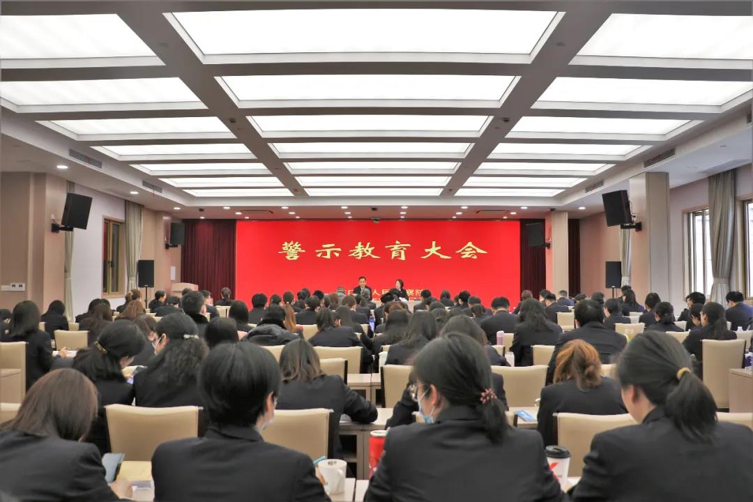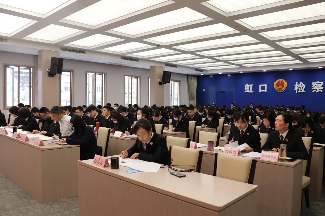 为深入贯彻落实《中共中央关于开展全国政法队伍教育整顿的意见》及市委、区委相关要求,结合虹口区院检察队伍教育整顿的部署安排今日,虹口区院召开全院警示教育大会。院党组成员、副检察长崔晓丽主持会议,院党组成员、检委会专职委员及全院干警参加会议。市沪东检察院副检察长、市政法队伍教育整顿第一指导组检察院现场指导工作专班负责人华肖同志,市政法队伍教育整顿第一指导组虹口组孙志雄、傅丽妹同志到会指导。 会上,院党组成员、派驻纪检组组长张捷作了“以案为镜、正风肃纪”专题讲座并组织观看了《正风反腐就在身边》警示教育专题片。 张捷组长以政法系统内部违纪违法典型案例为反面教材深入剖析了成因及教训,并就坚定不移地推动全面从严治党向纵深发展,持续巩固和发展检察系统风清气正的良好政治生态提出了四点意见:一是以案示警,发人深醒,深刻认识纯洁政法队伍的重要性和紧迫性。提高政治站位,切实增强开展教育整顿的政治自觉、思想自觉和行动自觉;二是以案为鉴,汲取教训,切实做到警钟长鸣,以反面典型为镜鉴,痛定思痛、引以为戒;三是以案为镜,对照自省,自觉坚守自律底线,要常怀律己之心,严于律己,防微杜渐,自觉抵御腐朽思想侵蚀,始终保持廉洁本色;四是以案促改,自查自纠,把自我革命贯彻到底,清清白白做人,认认真真做事,不辜负党和人民的信任,永葆检察人员清正廉洁的本色。 崔晓丽副检察长对全体干警提出三点要求:一是要把党的政治纪律和政治规矩挺在最前面,筑牢拒腐防变的思想防线,牢记“从严治党、从严治检”要求;二是要心存敬畏,高度自律,准确把握交往界限,把好人情关、交友关,不留灰色地带;三是要以案为鉴,汲取教训,坚决抵制腐朽思想观念和生活方式的侵蚀,守住底线、不越红线、不碰高压线,努力打造一支党和人民信得过、靠得住的检察铁军。以良好的精神状态、求真务实的作风,高质量推进检察队伍教育整顿工作。