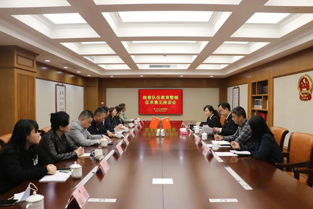 近日,虹口区院召开检察队伍教育整顿第二次征求意见座谈会,市委政法队伍教育整顿第一指导组成员孙志雄、傅丽妹到会指导。区检察院党组成员、派驻纪检组组长张捷,院党组成员、政治部主任徐丹丹,人大代表、政协委员、企业家代表、律师代表、特约监督员代表、群众代表以及院教育整顿领导小组相关成员出席会议。 虹口区院通报了现阶段来教育整顿工作开展情况,并向与会代表讲解查纠整改环节的基本情况、顽瘴痼疾专项整治整改内容和具体措施。与会各界代表开门见山,结合各自工作实际,就拓宽律师与检察院之间的沟通渠道、创新典型案例宣传方式方法、深化“送法进社区”、强化检察官履职尽责担当作为、加强检察英模宣传,弘扬检察队伍正能量等和检察工作息息相关的内容提出具体意见和建议。 在广泛听取意见建议后,张捷组长和徐丹丹主任对大家提出的意见建议做了回应并表示衷心感谢,表示将认真梳理吸纳代表的意见建议,逐条梳理、逐项研究,以实际整改行动回应代表们的关注和期盼,提升人民群众对检察工作的获得感和满意度,将教育整顿成果落到实处。