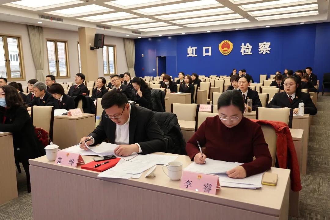 为全面贯彻习近平总书记对政法工作的最新重要指示精神,认真落实《中共中央关于加强新时代检察机关法律监督工作的意见》,以求极致精神依法能动履职,更好为大局服务、为人民司法,近日,虹口区检察院举行了“求办案极致、铸监督品牌”2021年度检察官新时代新担当新作为优秀案(事)例评审会。虹口区检察院党组书记、检察长孙军,部分院领导及部门负责人参会。 会议特邀上海市检察院法律政策研究室主任皇甫长城、案件管理办公室主任韩孔林、市检察院人民监督员朱明瑛,虹口区消费者权益保护委员会秘书长张兢,虹口区人大代表温静、邵曙范、张晔,虹口区政协委员黄清,上海财经大学副教授、博士生导师李睿担任评委。 经个人申报、部门推荐、检委会初审等环节,从32个申报案(事)例中产生了20个候选案(事)例入围本次评审会,汇报人按照事先抽签顺序,结合PPT依次上台进行了汇报展示,评委们进行了现场打分,并对选手的表现和汇报内容进行了精彩点评。 李睿副教授对虹口区检察院围绕中心工作,紧紧抓住虹口的专、新特色,着力提升检察工作能级给予了充分肯定。区检察院把虹口区位特点变成工作优势,形成一套办案和权益保护的清单、流程和程序,不断打造虹口品牌。检察官们在办案中注重总结规律经验,挖掘案例价值,形成案例的启示、指引、示范。每个案事例背后折射出的不仅是检察官们的专业素养,更体现了高度的政治自觉、法治自觉和检察自觉。 温静校长对虹口区检察院检察官和检察官助理的精彩表现表示赞赏,认为大家用精彩的讲述充分诠释了新时代检察官的职业、专业、敬业精神。通过聆听讲述感受到了虹口区检察院在经济发展和生活点滴中为老百姓提供的司法保障。每位检察官都带着感情和热情在案件中寻找切入点,使每一个案件都能依法解决,作为人大代表为虹口区检察院有一批专业精湛、勇于担当的检察官感到自豪。 皇甫主任对区检察院案(事)例评选活动表示充分肯定,指出20个案事例精到的总结、精妙的展示、精彩的演说,充分体现了检察官“能动的理念、为民的情怀、担当的精神”。案(事)例评审也给年轻干警的成长成才搭建了很好的展示平台,充分展示了新时代检察官的精气神,树立了新时代虹口检察的良好形象。同时,通过评审也让检察官真正领悟担当精神,通过这种担当、氛围的营造和精神的传承,不断激励和引导检察官依法办案、尽责履职、担当作为。