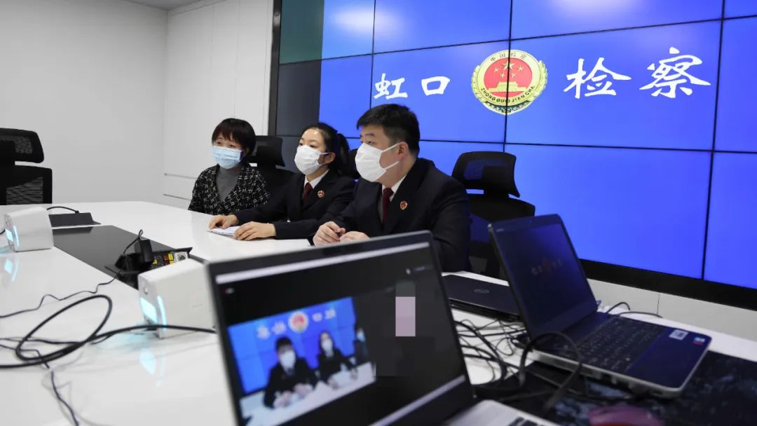 3月23日,虹口区检察院对一起未成年人案件进行提审。因其未满18周岁,根据《刑事诉讼法》第270条的规定,“对于未成年人刑事案件,在讯问和审判的时候,应当通知未成年犯罪嫌疑人、被告人的法定代理人到场”。然而涉案未成年人的父亲因疫情无法从外省赶来上海,检察官迅速为其联系了符合条件的社工作为合适成年人代表参与陪同。提审当天,社工凭24小时内的核酸检测阴性报告进入远程讯问室,作为涉案未成年人的“临时家长”全程陪同其进行远程提审,在保障涉案未成人权益的同时,监督办案人相关工作。 3月24日,虹口区检察院对一起案件远程宣告不起诉。疫情突发,被不起诉人无法入沪,检察官决定采用远程视频的方式对其宣布不起诉,并请值班律师在旁见证,严格遵守防疫规定的同时,维护其合法权益。检察官通过网络对其训诫,“不要因一时的非理智行为给本人和家庭造成不可弥补的损失和影响。希望你走好今后的人生路,崇法守法,牢记承担社会和家庭责任,不断提高自身道德修养。”被不起诉人深刻反省了自己的犯罪行为,表示以后将远离违法犯罪,努力成为有用之才。 特殊时期、特殊情况下,虹口区检察院通过远程连线、同步录音录像保障办案工作顺利开展,既保障犯罪嫌疑人的合法权益,又有效阻隔了疫情传播,实现了防疫、办案两不误。今后,虹口区检察院将继续积极探索灵活办案新模式,借助信息化科技手段助推检察办案工作,不断实现司法办案质效新提升。