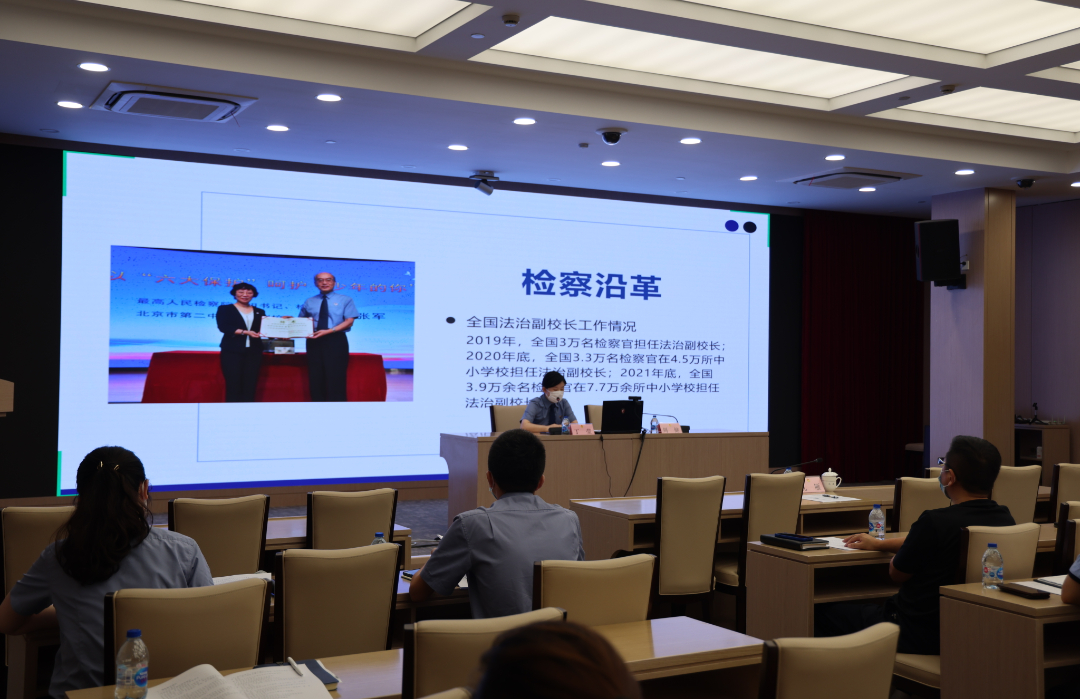 为深入贯彻落实《中小学法治副校长聘任与管理办法》《检察官担任法治副校长工作规定》,提升法治副校长团队能力水平,以更高的质量落实最高检、市检察院“检爱同行——法治进乡村”活动部署要求,全面维护未成年人合法权益,8月26日下午,虹口区检察院举行法治副校长工作培训会,虹口区检察院党组成员、副检察长孔雁出席培训。虹口区检察院法治副校长、法治副园长们以及来自虹口公安分局的未保工作专职民警共同在现场参加了此次培训。 此次培训会是一场全新的集结。今年6月,虹口区检察院与虹口区教育局共同举行了法治副校长增聘活动,自此不仅实现了全区中小学校法治副校长的全覆盖,而且实现了全区幼儿园法治副园长的全覆盖。 培训会上,全国检察机关未成年人检察业务能手、第一检察部副主任丁莹与大家分享了自己在担任法治副校长工作中的心得体会,并且从法治副校长的“前世今生”、职责及履职提示、履职保障,全方位地向参会人员介绍了法治副校长工作,并对法治副校长工作中的注意点作了重点提示。 会上,每位法治副校长、法治副园长还拿到了一份“划重点”的贴心小指南,上面载有履职要点与未成年人保护相关的重点法条。 培训最后,虹口区检察院党组成员、副检察长孔雁就法治副校长工作的具体开展提出了三点要求:提高思想站位,更积极主动地开展法治副校长工作;加强研究学习,更精准敏锐地开展法治副校长工作;继续密切协作,更全面有力地加强未成年人司法保护工作中的公检联动。 新学期即将到来,通过这一场特殊形式的“集体充电”,虹口区检察院的法治副校长团队已经动力满满,他们将肩负神圣的使命,走进全区各中小学校、幼儿园,用心、用爱护航未成年人健康成长。