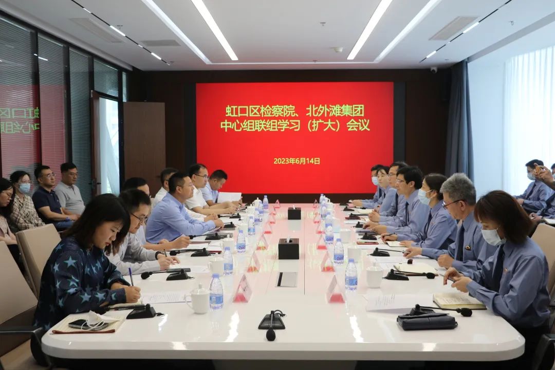 在北外滩“峥嵘初现”、全面起势的新阶段,如何更好发挥检察机关独特作用?如何共同为北外滩开发建设添砖加瓦、增光添彩?为答好这道新时代出给虹口人的“必答题”,6月14日,虹口区检察院与北外滩集团开展“全面贯彻党的二十大精神 护航北外滩打造中国式现代化生动实践地”中心组联组学习活动,双方领导班子、相关部门负责人参加。 座谈会上,北外滩集团党委副书记、总经理沈锋详细介绍了北外滩发展情况,并围绕产业发展、历史风貌保护、普法宣传等方面提出司法需求。虹口区检察院党组成员、副检察长陈卫民从高质量发展、高品质生活、高效能治理等三个方面,介绍了检察机关护航北外滩发展的法治实践。 互动交流环节,北外滩集团党委委员、副总经理刘峰表示,法治营商环境对于招商引资、安商稳企具有重要作用,司法是构建一流营商环境、维护社会公平正义的最后一道防线。希望与区检察院加强工作交流,共同优化法治化营商环境,提升广大市场主体的获得感、安全感和满意度。区检察院第一检察部主任周健表示,要将检察工作与北外滩建设发展司法需求充分结合起来,加强检企合作,持续推进平安虹口建设、知识产权保护、金融犯罪打击、反洗钱等工作,营造北外滩“聚宝盆”优质发展软环境。 北外滩集团党委书记、董事长程军表示,北外滩集团发挥“办企合一”优势,全力做好招商引资、项目建设等工作,推动北外滩开发建设再发力、再加速、再提升。今后,要与区检察院增进联系、凝聚合力,共同打造“上海北外滩、浦江金三角、世界会客厅、浦西新地标”。 虹口区检察院党组书记、检察长孙军充分肯定了双方联组学习的重要意义,表示区检察院将进一步找准找实服务区域大局的切入点,与北外滩集团建立常态化联系机制,在党建引领、风险防控、普法宣传、人才培养等方面加强工作互动,推动北外滩核心竞争力再提升、护航法治化营商环境再优化。 区检察院中心组成员还实地参观了北外滩数字展示馆,通过沙盘模型和沉浸式影片,详细了解北外滩的形态布局、开发现状和规划建设情况。随后,前往雷士德工学院,参观上海创新创意设计研究院,在这座修缮一新的文化地标中感受重焕生机的历史文脉。