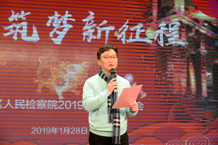 1月28日下午,我院举办2019年度新春联欢会。院党组书记、检察长贺卫致新年贺词,院党组成员和全体干警、文员共同观看演出。联欢会上,我院干警、文员充分发挥自身才艺特长,自编自排自演,呈现了一场积极向上、精彩纷呈、气氛热烈的视听盛宴,其中检察二部表演的旗袍秀《白桦林》更是获得了阵阵掌声,整场晚会传递了全体黄检人对新年和黄检未来的美好祝愿。