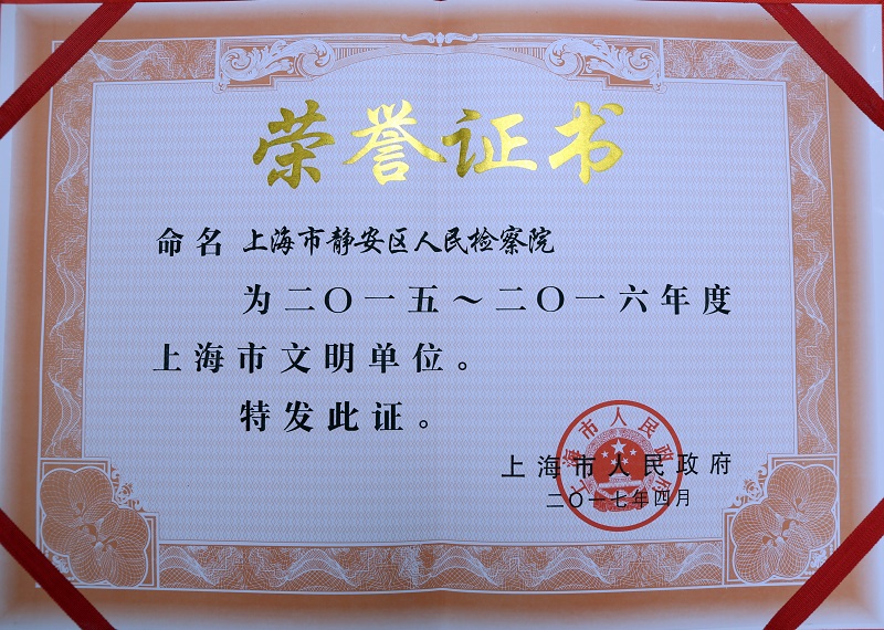 静安区检察院荣获2015~2016年度上海市文明单位称号