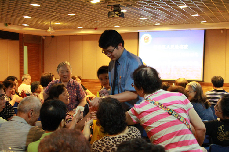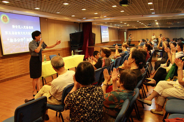 7月17日上午,上海静安检察院第五届检察文化月之“检务公开社区行”专场活动在江宁社区三星坊居委举行。 此次来自静安检察院政治部、公诉科、办公室、社区检察科的干警们深入社区,通过“微博微信展现阳光检务新魅力”的演讲、原创诗朗诵“中国出了个毛泽东”、检务公开知识问答、歌曲演唱等丰富多样的表演形式和与居民的互动交流,宣传检察院阳光检务的做法,将“检务公开”活动与法制宣讲团入社区活动紧密结合,实现宣传检察职能,展现新时期检察官精神面貌,预防犯罪、维护居民权益的多赢。 活动现场干警们向居民发放便民联系卡和各类检务资料100余份,提供法律咨询服务10余次,解答居民的疑问,进一步介绍、推广检察职能。100多名社区居民冒着酷暑参加了活动,并踊跃参与知识问答、歌舞表演互动,取得了很好的效果。