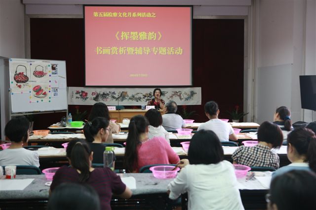 “周老师这樱桃画的真好,颗颗饱满,这高光处理的也不错,真是硕果累累啊!”7月8日下午,上海静安检察院举行第五届检察文化月系列活动之“挥墨雅韵”书画赏析暨辅导活动,并邀请了上海市美术家协会会员、著名画家李清音老师来院作专题辅导。 一来到会场,检察干警们就拿起毛笔跃跃欲试,“哎,先别急着动笔,你们知道这三支大小不一的画笔是什么用途,分别又是用什么毛做成的吗?”李清音老师从画笔的制作到中国画的历史,给静安检察院的干警们先上了一堂绘画历史课,干警们对中国画的博大精深有了初步的认识。随后,在李老师的指导下,干警们一笔一划从着色到晕染,从篮身到果实,从一开始谨慎着不敢下笔到熟悉对下笔力度的拿捏,干警们在中国画中体会到了绘画的乐趣。“呀,樱桃熟了!”大家对画得好的干警纷纷夸赞道。 “谢谢李老师的指导,这次书画赏析活动让我们感受到了中国画的魅力,丰富了干警们的业余生活,更有助我们更好的静下心来踏实办案。”干警小李在活动后向李清音老师表达了此次绘画感悟。