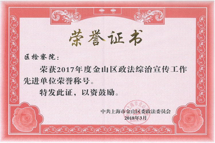2017年度金山区政法综治宣传工作先进单位