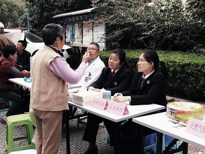 近日,我院第八党支部党员前往山鑫阳光城社区开展法治宣传活动。检察干警与社区居民热烈互动,分发了控告申诉、民行检察等检察业务宣传材料,并就大家关心的法律问题,提供咨询服务,获得了好评。