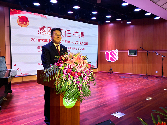 昨日,他们走过了无忧无虑的少年时代 今天,他们将告别童趣 蜕去稚嫩 沐浴着祖国的阳光雨露 迈进朝气蓬勃的青年时代 用宽厚的肩膀担起新时代的重任 以成人的姿态许下十八岁的诺言