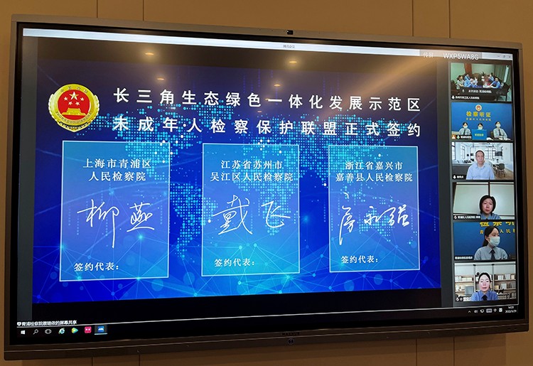 2022年5月29日下午,为进一步增强长三角区域未成年人检察保护工作合力,上海市青浦区检察院、江苏省苏州市吴江区检察院和浙江省嘉兴市嘉善县检察院联合召开线上长三角生态绿色一体化发展示范区未成年人检察保护联盟工作会议。我院党组成员、副检察长柳燕出席会议。
