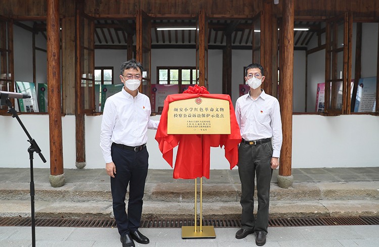 6月30日,我院联合区教育局走进革命家陈云的母校——颜安小学,开展“让红色文物活起来”庆祝建党101周年暨公益诉讼保护示范点挂牌活动,院党组成员、检委会专职委员与区教育工作党委成员出席,院机关党委、公益检察室、教育局党群部门、团工委及两家单位新党员、入党积极分子参加。我院党组书记、检察长刘晶与区教育工作党委书记孙卫共同为“颜安小学红色革命文物检察公益诉讼保护示范点”挂牌,带领新党员庄严宣誓、老党员重温誓词,刘晶同志作讲话。