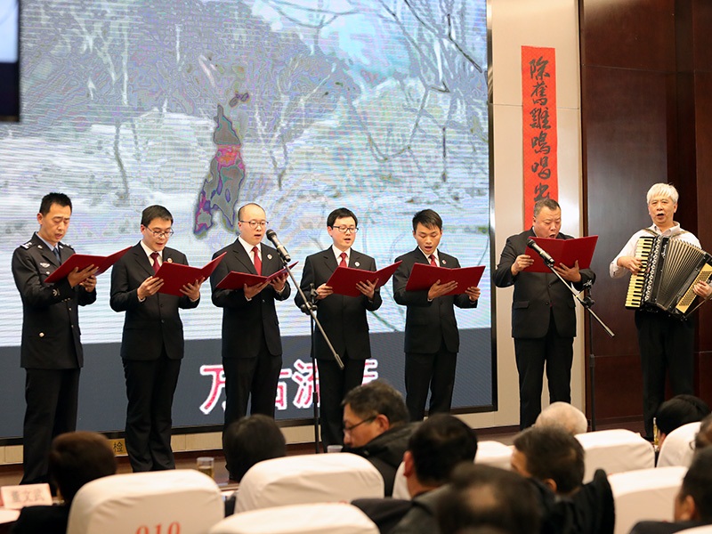 年迎春联欢会,院全体党组成员、退休老领导出席,政治部主任曹化致新春贺词,院全体干警、部分退休老同志共