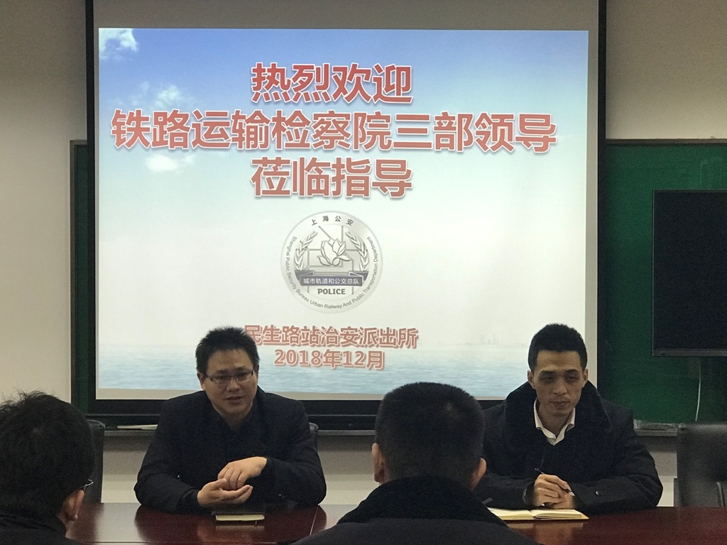 2018年12月26日,我院检察三部主任於乾雄带队前往民生路站治安派出所商讨刑事诉讼监督工作,听取了该所副所长张栋关于其管辖的轨交沿线和近三年刑事案件受理情况的介绍,并围绕做好刑事诉讼监督工作进行交流。