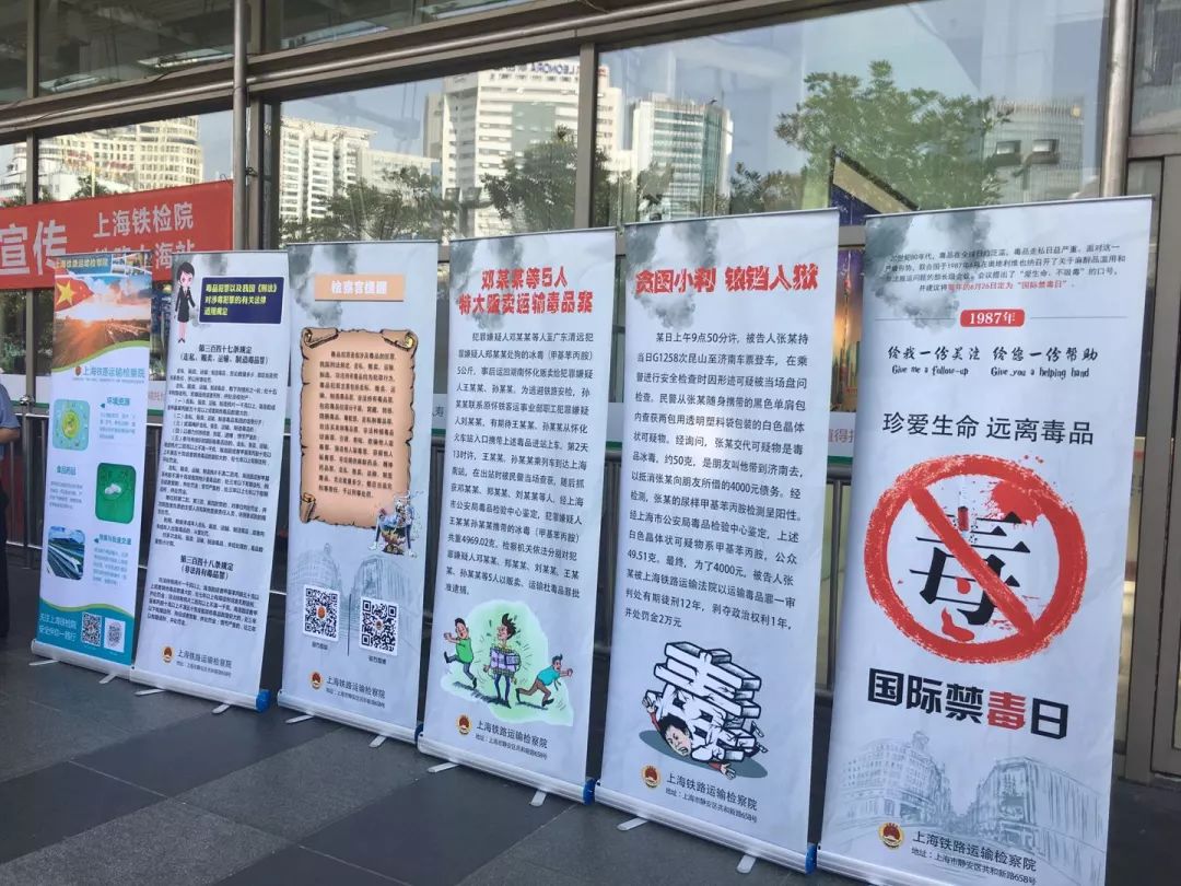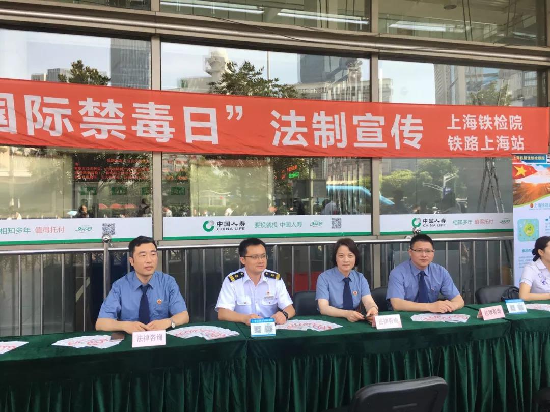 6月26日上午9时30分,我院检察官在铁路上海站南广场进行“6.26国际禁毒日”主题宣传活动。我院已经第20年在国际禁毒日开展系列禁毒宣传活动,今年选择在人流密集的铁路上海站,加大对往来乘客的法制宣传和普及。上海铁检院副检察长俞蕾、侦监科科长於乾雄、办公室人员,铁路上海站党委副书记、纪委书记吴鹏等数十位工作人员参与宣传。