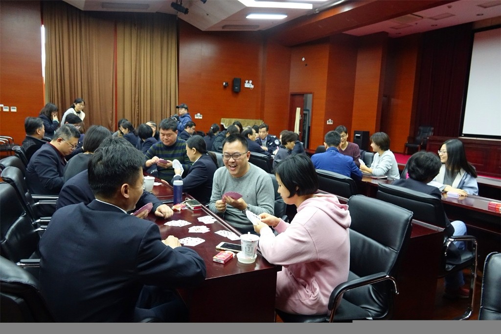 中午12时30分,各位干警翘首以盼的重头戏——80大赛准时登场。赛前,参赛干警两两组队,共分成16支队伍展开对抗。大家按照抽签结果围坐在一起,紧张而兴奋的交流战术。比赛中,选手们根据自己的牌面或是以攻为守,或是以退为进,顷刻间你来我往,各显奇招。有道是“你以读牌推理作矛,我以心理战作盾”,双方在没有硝烟的牌桌战场激烈厮杀,呈现了一幕幕精彩的尖峰时刻,整个过程闪耀着智慧的火花,释放工作压力的同时,秀出了自我风采。